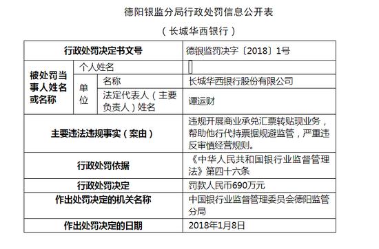 这是长城华西银行自成立以来收到的第五张百万级罚单,罚款金额最大的一次是在2018年1月,该行因违规开展商业承兑汇票转贴现业务,帮助他行代持票据规避监管,严重违反审慎经营规则,被原德阳银保监分局发卡690万元。